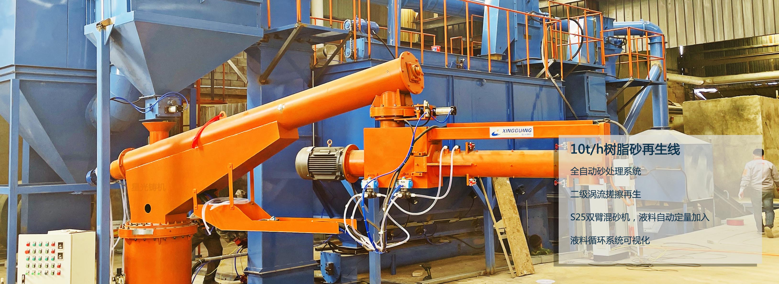 ????????主要產品:樹脂砂線傾斜滾筒式拋丸機自動造型線 (一)z95系列殼芯機,94系列垂直分型射芯機,ZH系列水平分型冷芯盒機熱芯盒射芯機。鋼丸填充殼型線。 (二) 多觸頭造型機,水平脫箱全自動造型機,靜壓造型機等粘土砂造型設備。 (三)年產3000噸至6000噸的樹脂砂再生設備,水玻璃砂再生設備,粘土砂再生設備。 (四)傾斜滾筒式拋丸清理機,吊鉤式、履帶式拋丸機,鋼板內壁清理機。 (五)承接用戶特殊需求的各種清理機械及各類砂處理再生設備機械的設計、制作。
